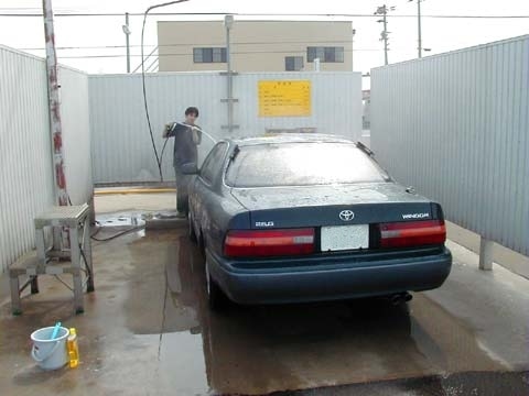 コイン洗車場の洗車銃は水圧が高いので、普段洗えない下回りやボディの継ぎ目も洗いましょう。洗車機のタイムリミットに追われて急ぐ急ぐ・・・ |