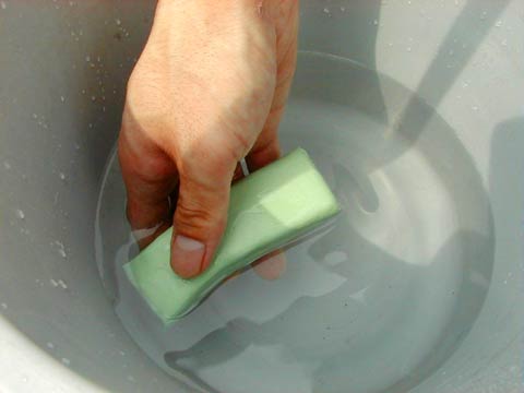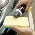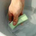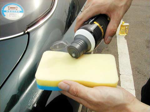 片手にバケツを持ちながら、ボディの上を滑らせていきます。ザラザラの引っ掛かりがどんどん無くなっていくのが実感して感動です。バケツの代わりに霧吹きを使うと良いかも。 |