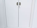 扉パネルに開いた小さな穴。それは錠前を取り付けるための穴です。小さいけど手応えのある重さの錠前(もちろん同梱されています)を、前から差し入れましょう。グッと強く押し込めば固定されます。