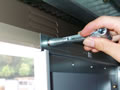 扉パネルの一番上は、戸車を外側から内側に向かって取り付け、前ランマ内側の溝に組み込んで滑らせます。前ランマの溝に沿って戸車が滑らかに走り、「スーッ、スーッ」と軽快な感触が楽しめます!