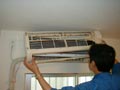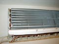 熱交換器の上部から、まずは洗剤を噴霧していきます。