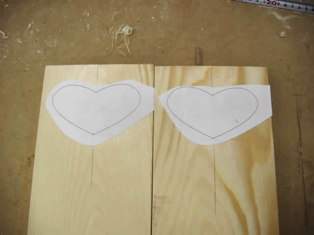 ジグソーを使って、ハート型にくりぬいていきます。