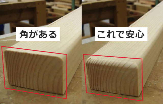 先端を捨て切りすることで、切り口がきれいになり、組み立て時ラクになります。また、安全のため、全ての面をヤスリかサンダーで入念に削りましょう。