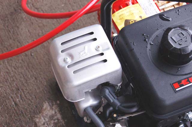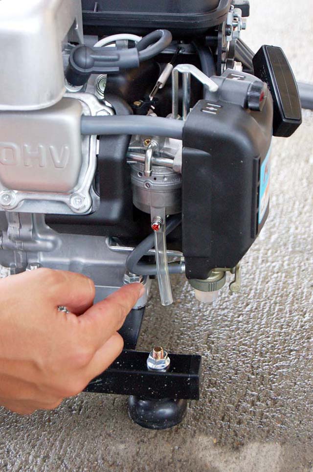1. エンジンが止まっていることを確認します。 使用直後は本体が熱くなっているので、 触れないように注意しましょう。