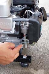 4. エンジンスロットルを数回引き、内部に残っている水をしっかりと 抜きます。(水が残っていると凍結の恐れがあります。)
