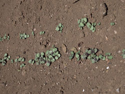 日当たりの良い場所を選び、スジまきを行い薄く土をかけ、上から軽く手で押さえて土となじませます。