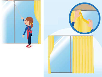 伸び縮みタイプの掃除用ワイパーならカーテンレールの上にたまったホコリもしっかりキャッチ。