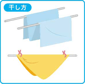洗った後はM字に干すことで、風通しが良くなり早く乾きます。