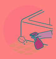 洗い場の細かい目地、浴室の角、洗面器や椅子の裏にできたピンク汚れには「ピンク汚れに対応したバス用洗剤」が有効。