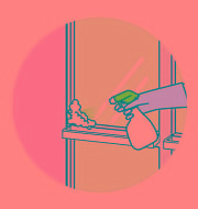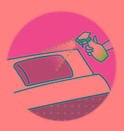 柄付きのスポンジや雑巾にカビ取り剤をスプレーし、カビの部分にぬります。