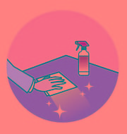 市販のテーブル専用のクリーナーをひと吹きして、キッチンペーパーやティッシュで拭き取るだけで、キッチン周りや食卓をあっという間に除菌できます!