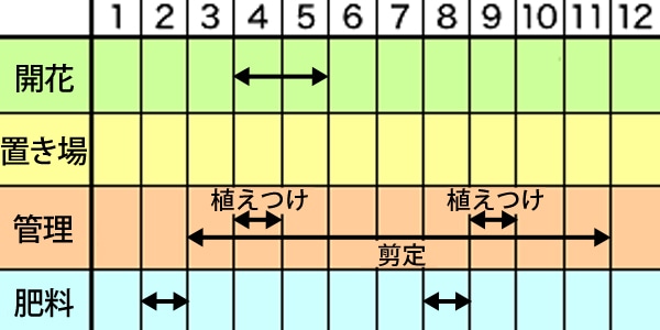 伸びた根を傷つけやすいため、植え替えや移植を行う際は注意しましょう。作業は5月頃に行います。