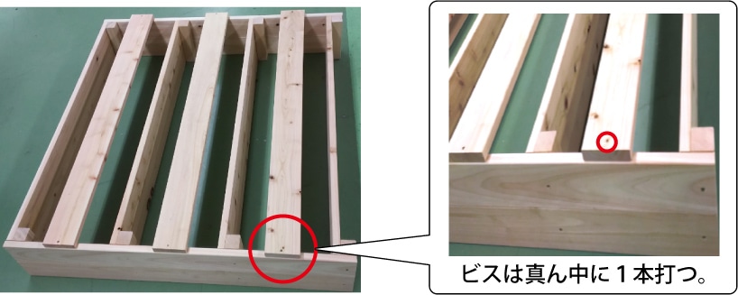 ①を2本、③を2本使って4組棚板を作ります。(50mmビス使用)