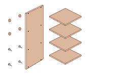 1. 部品はサイド板、中板、背板、ネジ、ネジ用シール