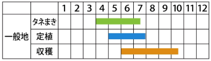 | 発芽適温 | 25~30℃ | 輪作年限 | 3年 |