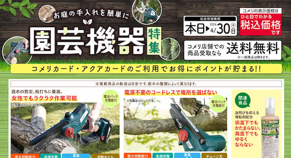 掲載商品一例:ハンディチェーンソー、剪定鋏、ヘッジトリマーなど。