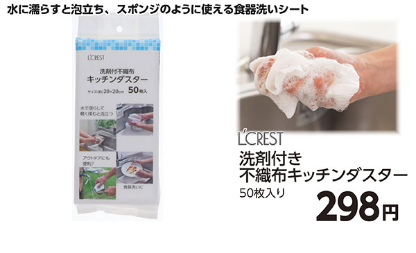 掲載商品一例:液体衣料洗剤、水切りネット、消臭ビーズなど。