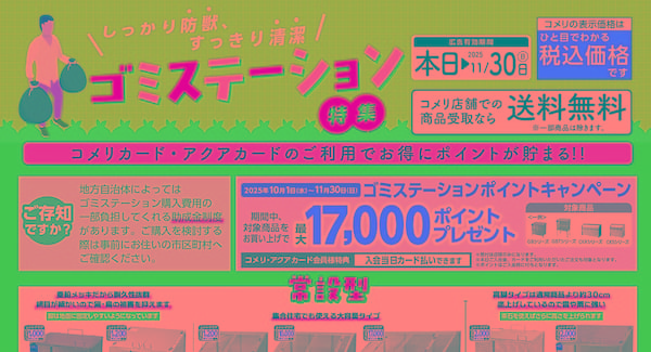 掲載商品一例:ごみボックス、グリーンストッカー、折りたたみゴミステーションなど。