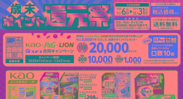 掲載商品一例:洗濯洗剤、柔軟剤、入浴剤など。