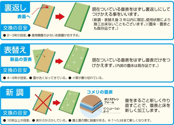 現在ついている畳表を外し裏返しにしてつけかえる事をいいます。