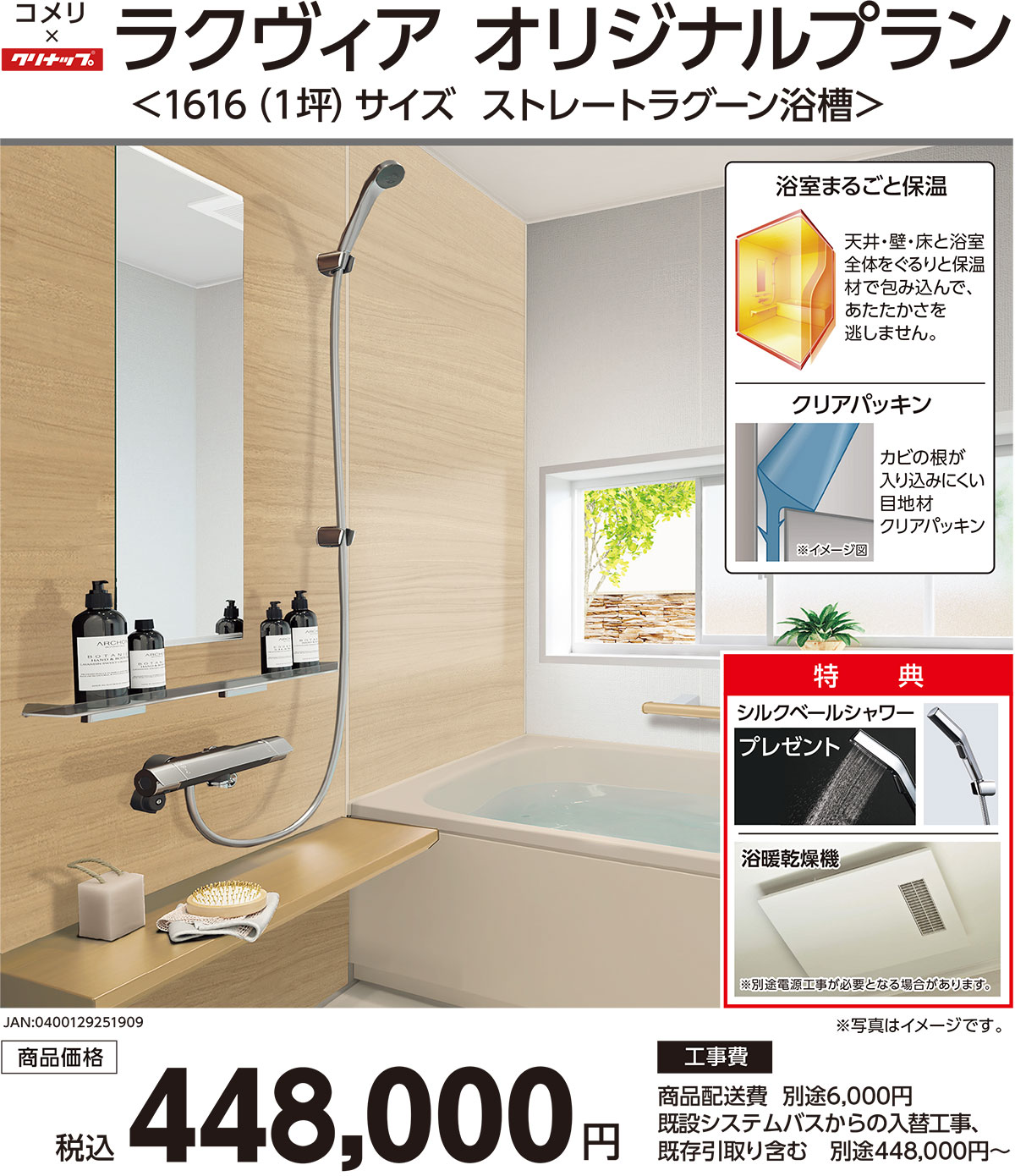 保温性・安全性・清掃性を高めた、お手頃価格で高機能な浴室です。