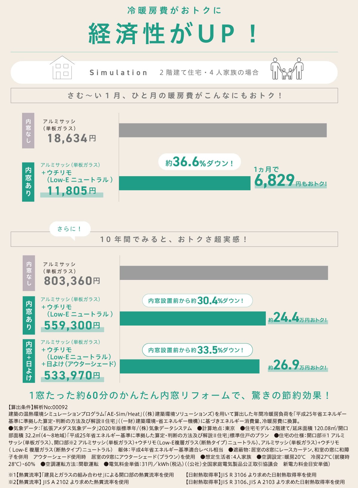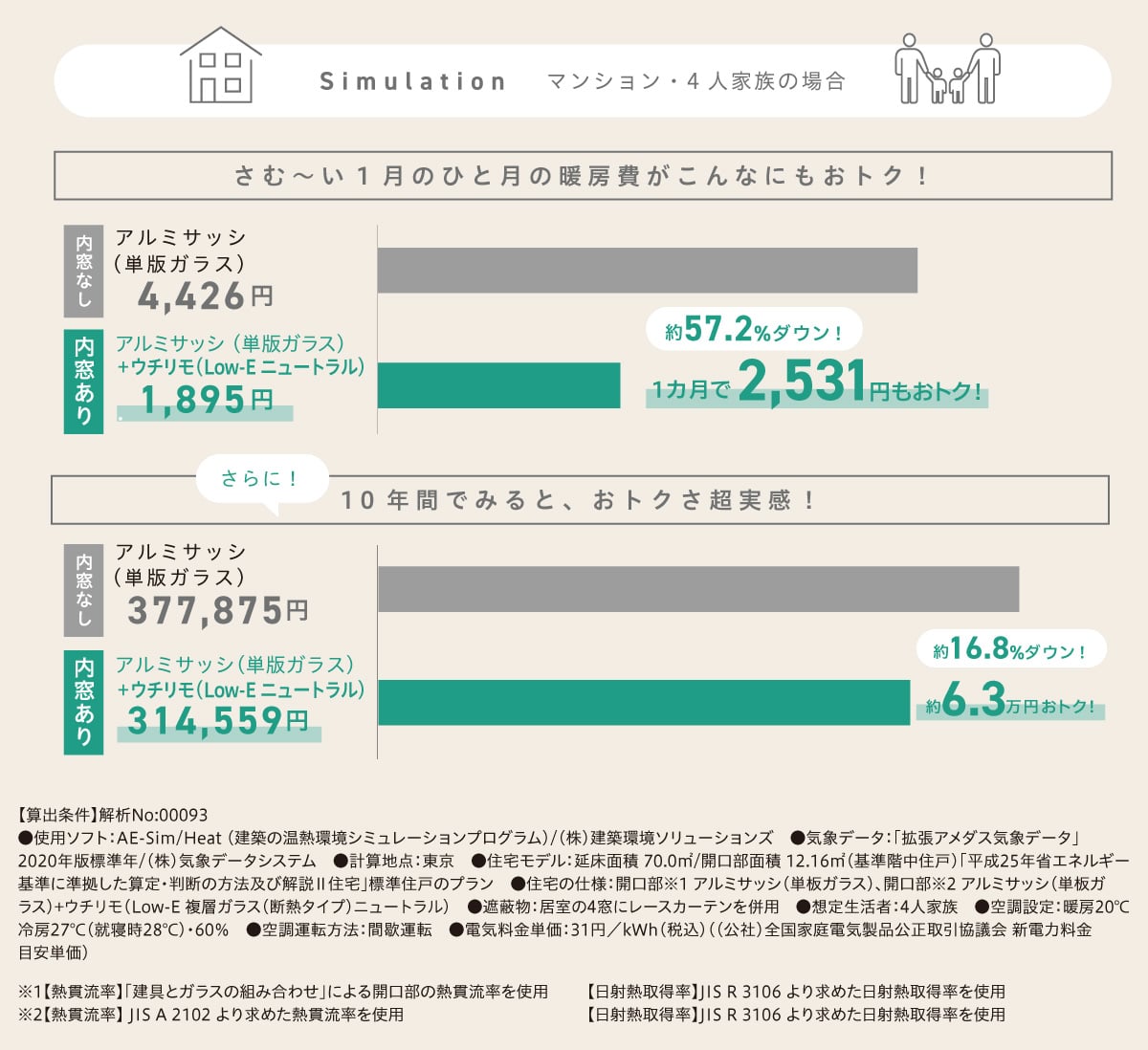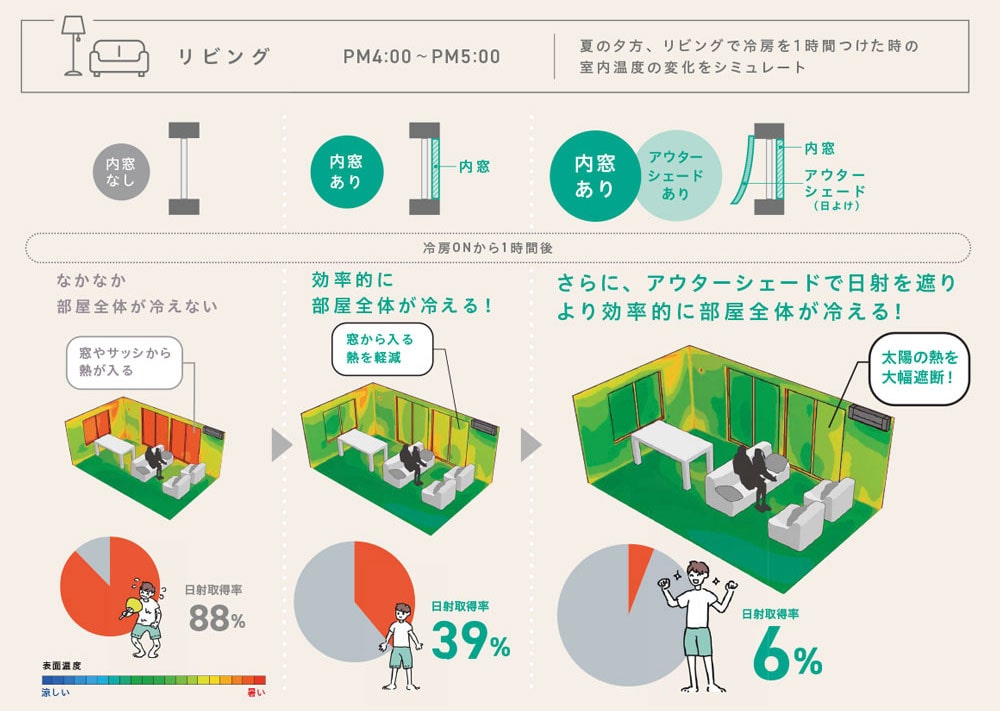 内窓の遮熱ガラスとアウターシェードの組合せで