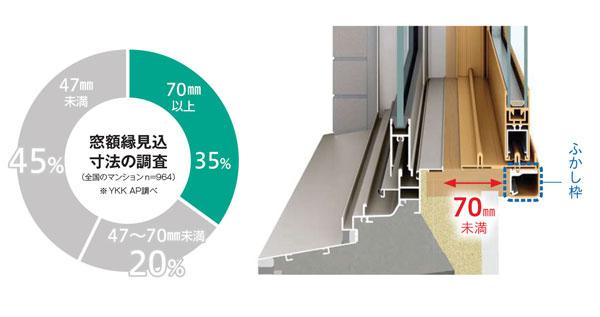 マンションの窓の多くは窓額縁の見込寸法が内窓取付けに必要な70mmに足りず、『ふかし枠』が必要となります。