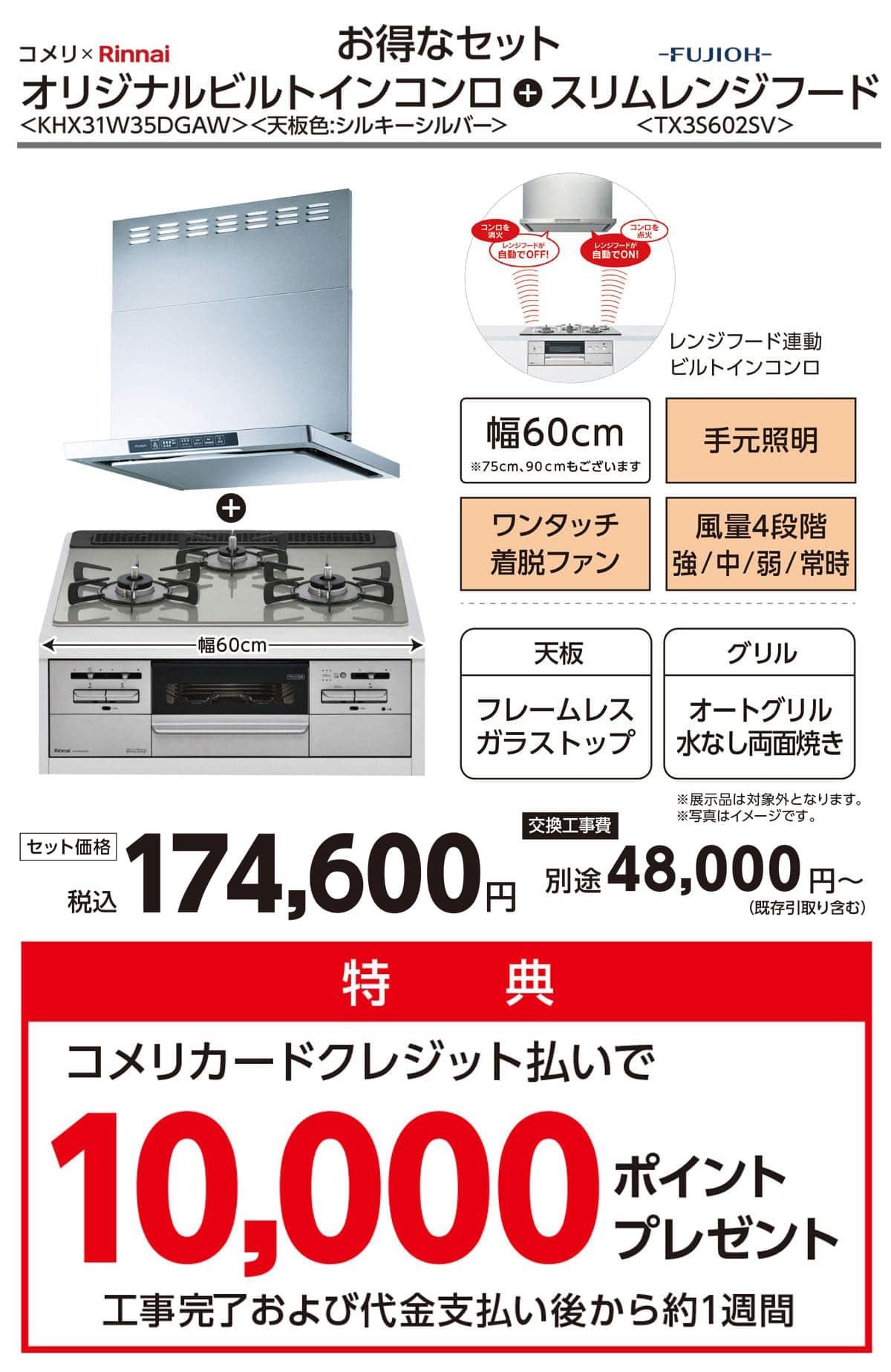 ※ガスビルトインコンロから同型ガスビルトインコンロへの交換となります。