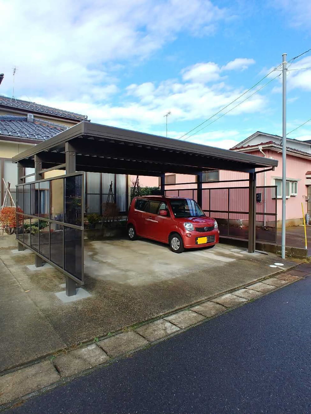 既存のカーポートの耐久性に不安を感じていたとのことでした。新しく強度の高い折板カーポートを提案させていただきました。