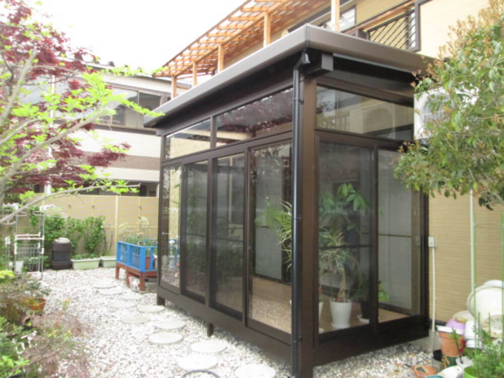屋根からの落雪がある場所でもテラスルームを設置したいとのことでした。屋根材が折板の落雪に強いものを提案させていただきました。