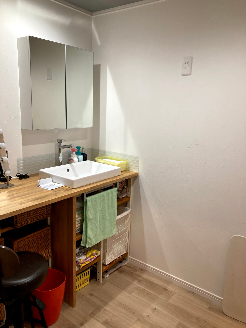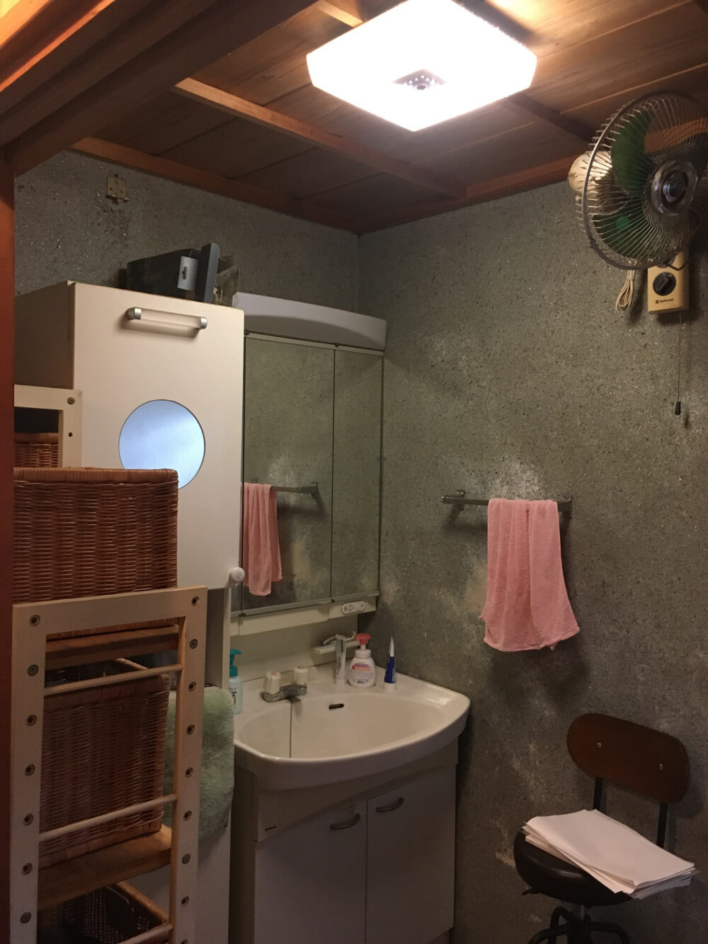 お風呂の床や壁がタイルで冬は寒く手入れも面倒なので楽にしたい。洗面所も併せてきれいにしたいとのことでした。お手入れ簡単なシステムバス、洗面所は使い勝手のよいタイプを提案させていただきました。