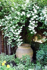 Partial or medium shade 間接光で明るい、半日陰北側で、夏は上から光が差すことがあるが、それ以外は直接、日が指すことのないような場所や建物の陰など。こういったところは、一応殆どの植物が使えますが、日当たり好きな植物はすこし徒長するかもしれません。樹木などで、間接光をさえぎるものがなければ問題ありません。ただし、建物側は雨が当りにくく、乾燥しやすいことを考慮して、植物を選ぶ必要があります。 |