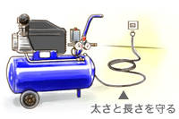 3.どうしてもコンセントから離れたところで作業する場合は、コードよりもエアーホースを伸ばして対応しましょう。