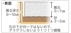 | ゴムハンマーで叩いて石を 落ち着かせます |