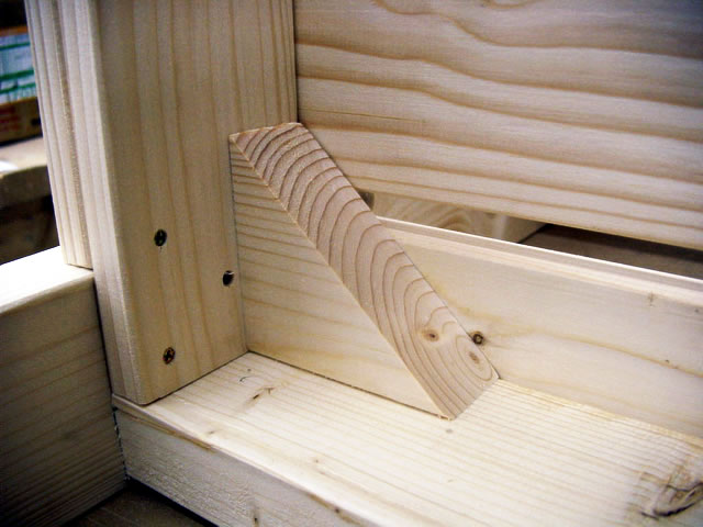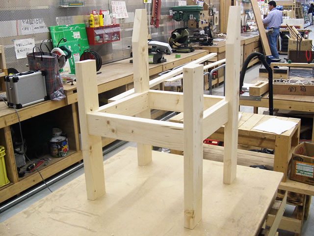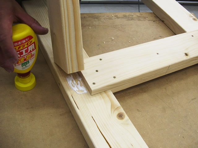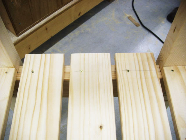 座る面に敷く1×4材を切って取り付けます。長いのが3本、短いのが2本です。