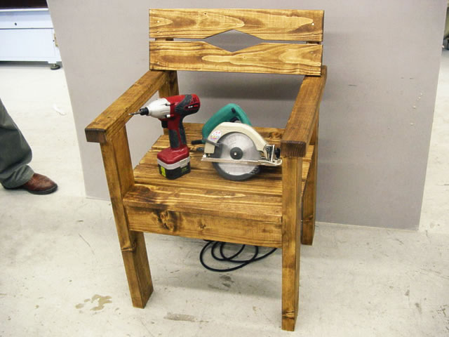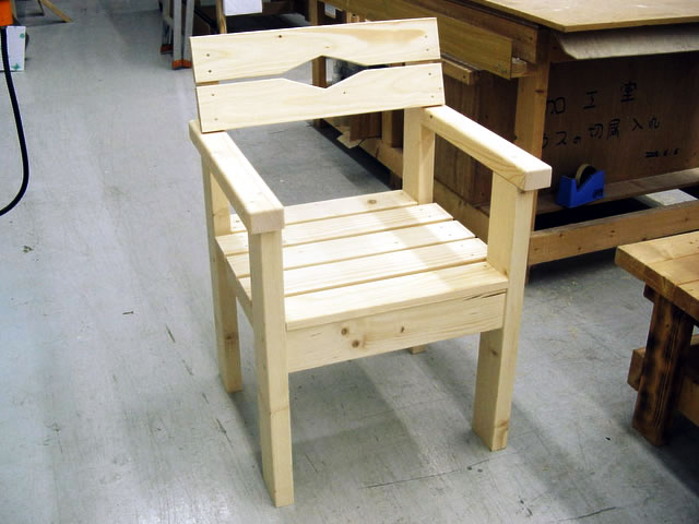 背もたれに使う1×4材は、ダイヤ型になるようにくり貫きます。ジグソーを使うと楽です。