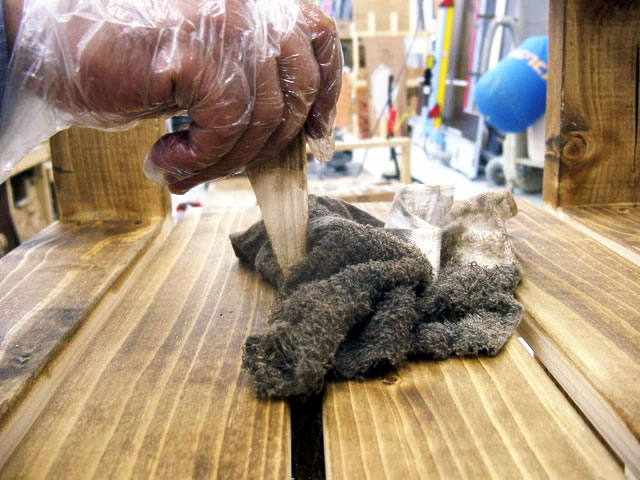 すき間は、木片を使うなどして、モレがないように塗り込むようにします。