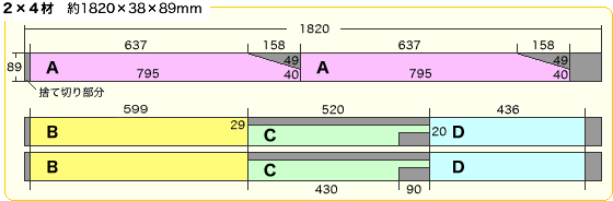 今回は1×4材3本、2×4材3本を使った例を紹介しよう。