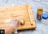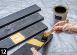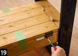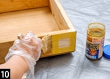 箱を着色ニスで塗装する。長い辺の端から89mm(Aの板幅分)は塗料がつかないように、マスキングテープを貼っておく。