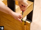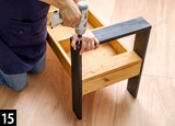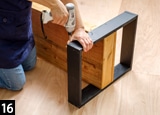 本体を倒し、Bを脚と脚の間に挟み込むようにする。2カ所を35mmスリムビスで留める。残りも同様に2カ所ずつ留める。