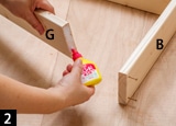 G2枚とB2枚で箱をつくる。Gの木口に接着剤をつけてBと貼り合わせておく。