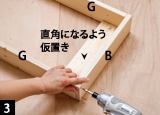 Aを本体の長い辺に取り付ける。色を塗り残した部分を本体に当て、下穴をあけて35mmスリムビスで4カ所留める。残りの3枚も同様にビスで留める。