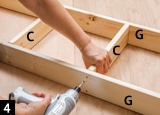 1でつけた330mmの印のところにCを入れ、外側から35mmのスリムビスで留める。もう1カ所も同様にCを入れて、ビスで留める。