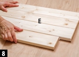 Dを脚の上部分に置き、両端2カ所ずつ35mmスリムビスで留める。逆側の脚にも同様にDを置き、両端2カ所ずつ、スリムビスで留める。