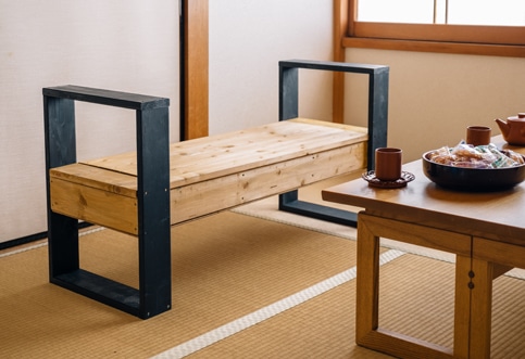 本体の両端にニスを塗ったBを置き、短い辺は2カ所ずつ、長い辺は3カ所ずつくらい35mmスリムビスで留める。