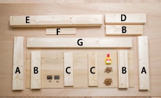 A4枚、B2枚、Dをインテリアペイントで塗装する。Aの下から200〜310mmの間も塗料がつかないようにマスキングテープを貼って塗ること。