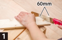 B 4枚の端から60mmの位置に印をつけ、斜めにカットする。