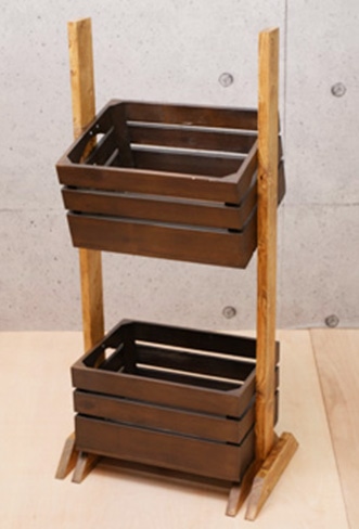 ガーデンBOXをつける高さをバランスを見ながら決め、脚に印をつけて下穴をあけ、ビスでゆるめに留める。