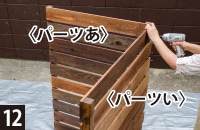 〈パーツあ〉を向かって左に、〈パーツい〉を右に直角になるように置き、〈パーツあ〉の柱にスリムビスでB を留める。