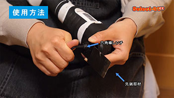 先端部へ六角棒レンチを使って、サンディングパットを固定し、サンディングパットの上にサンディングペーパーを取り付けます